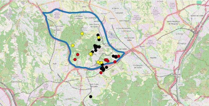 Devido à deteção de casos a sul da autoestrada AP-7, a Serra de Collserola foi delimitada e isolada. As medidas para reduzir a densidade populacional na área foram reforçadas para minimizar o risco de transmissão do vírus.