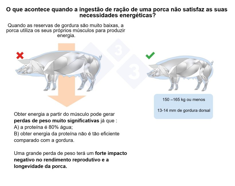 Se a dieta de uma porca em crescimento até à sua primeira cobrição fornecer uma quantidade limitada de proteína, mas o animal mantiver a ingestão de alimento, esta energia extra será utilizada para armazenar gordura, resultando num menor peso.