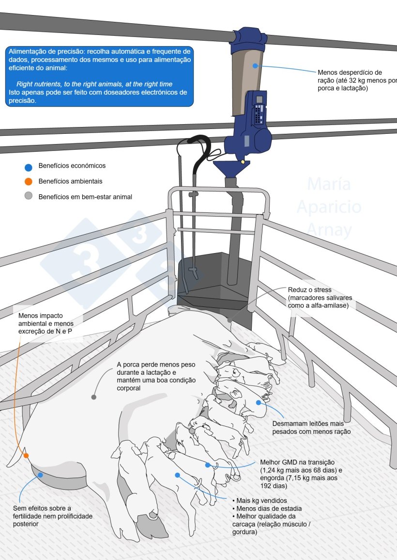O infográfico que acompanha este artigo resume visualmente os principais benefícios observados em vários estudos recentes, que estão bem descritos no artigo "Alimentação de precisão em porcas lactantes: caminho para a sustentabilidade e eficiência" que foi publicado há um tempo.