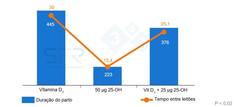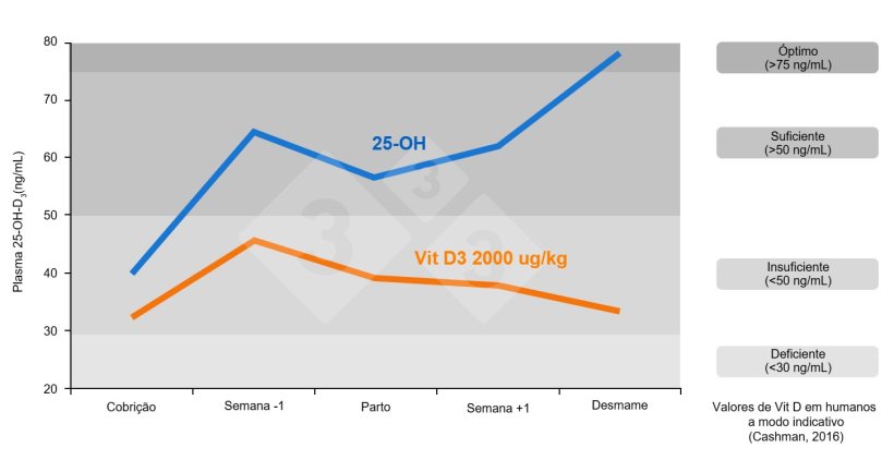 Portanto, garantir a disponibilidade de cálcio através de concentrações plasmáticas adequadas de 25(OH)D3 tem um impacto tremendo no rendimento reprodutivo: