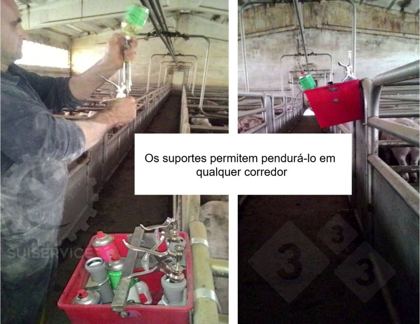 Três tubos de plástico estão presos ao balde por abraçadeiras, que irão albergar três seringas diferentes que podem ser utilizadas para diversos tratamentos antibióticos ou anti-inflamatórios. O comprimento do tubo é calculado com base no comprimento da seringa, incluindo a agulha, para que, ao ser inserida, a agulha não toque no fundo e, portanto, não seja danificada. No entanto, é sempre melhor remover a agulha após cada tratamento. Os suportes externos permitem que fique apoiada nos separadores dos parques, a uma altura confortável para utilização.