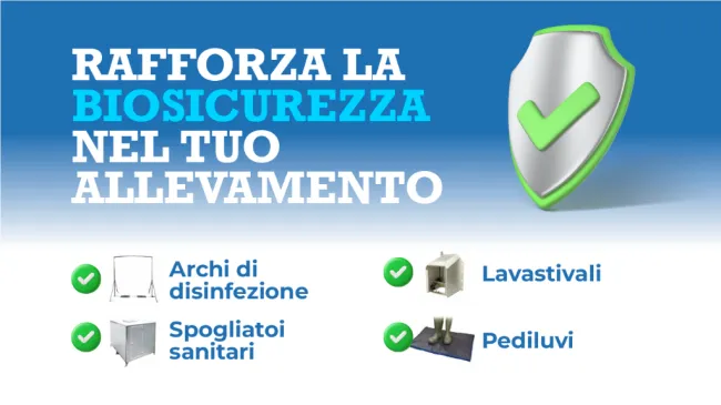 L'impiego di archi di disinfezione consente di migliorare la biosicurezza negli allevamenti . Si tratta di un elemento essenziale della biosicurezza esterna per garantire la protezione degli allevamenti dall'ingresso di agenti patogeni esterni.