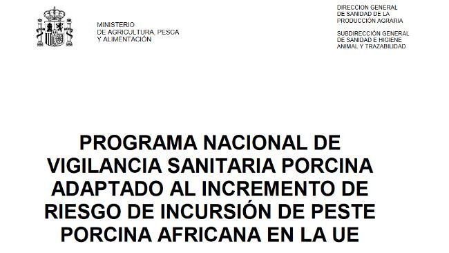 O Ministério da Agricultura espanhol publicou o Programa Nacional de Vigilância Sanitária Suína adaptado ao aumento do risco de entrada de Peste Suína Africana da UE.
