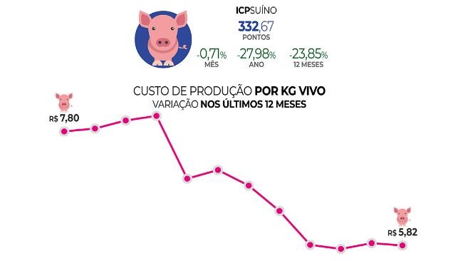 A variação do ICPSuíno foi de -0,71%, encerrando o mês de agosto em 332,67 pontos.