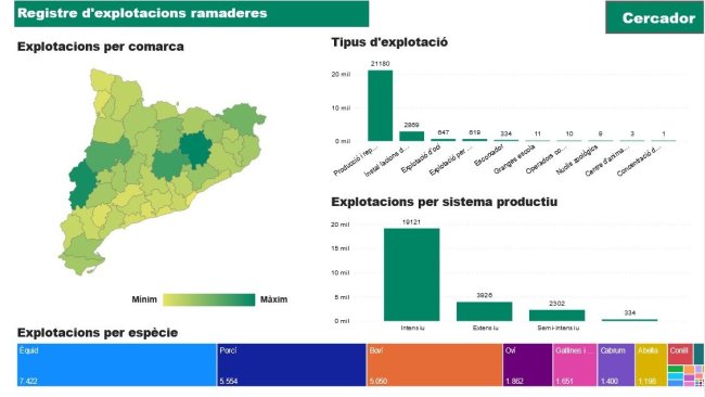 O Departamento de Agricultura da Generalitat da Catalunha colocou à disposição dos utilizadores uma página web onde se apresentam, de forma gráfica e interactiva, os dados globais do Registo de Explorações Pecuárias.