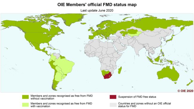 Os países atingem novos estatutos de doença para a Peste Suína Clássica e da Febre Aftosa, declarada pela OIE.