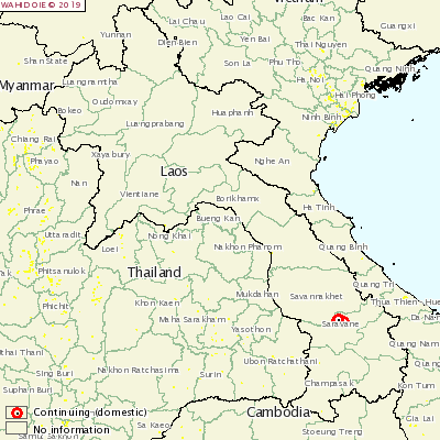Os focos confirmados encontram-se localizados em Toumlan, na Província de Saravane, no sul do país, com um total de 2191 porcos presentes dos quais 973 eram positivos.