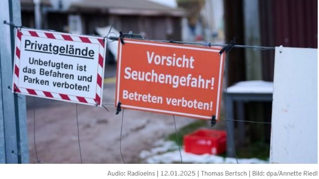 - Zona de vigilância: compreende as zonas da região de Brandeburgo situadas no interior de um círculo com um raio de 10 quilómetros, centrado nas mesmas coordenadas (Lat. 52.558301, Long. 13.630104), excluindo as zonas que fazem parte da zona de protecção.