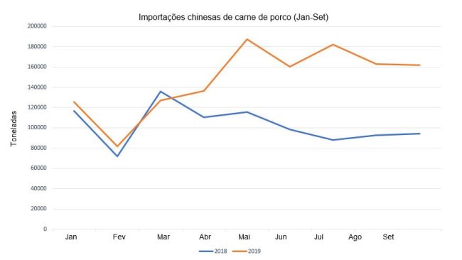Os preços do porco alcançaram níveis record em algumas regiões, enquanto que as barreiras comerciais continuam a limitar a vantagem para os EUA e Canadá. Os preços vão continuar a aumentar durante o quarto trimestre de 2019 e até 2020, enquanto os mercados tentam equilibrar a oferta a procura.