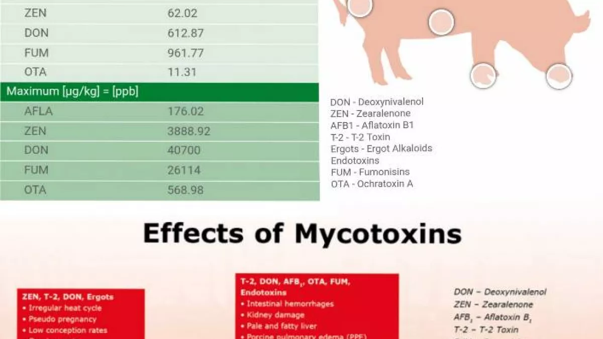 L'Europa si è classificata come una regione a rischio grave, con più della metà dei campioni testati al di sopra dei livelli soglia di rischio. I campioni dall'Europa hanno mostrato la più alta incidenza di DON al 65% e una media di 555 ppb. un campione di insilato di mais spagnolo a 28470 ppb. La seconda micotossina più frequente era FUM, presente nel 51% dei campioni. Il livello più alto di FUM in Europa è stato osservato in un campione di mais spagnolo a 15554 ppb. I campioni provenienti dall'Europa hanno mostrato nuovamente la più alta incidenza di tossina T-2, quasi il doppio rispetto agli anni passati, al 33%. Il più alto livello di tossina T-2 trovato in tutto il mondo (978 ppb), è stato rilevato in un campione di mais dalla Russia. ZEN si è verificato nel 44% dei campioni, con il più alto livello singolo proveniente dall'Europa osservato in un campione di mais austriaco (6082 ppb)